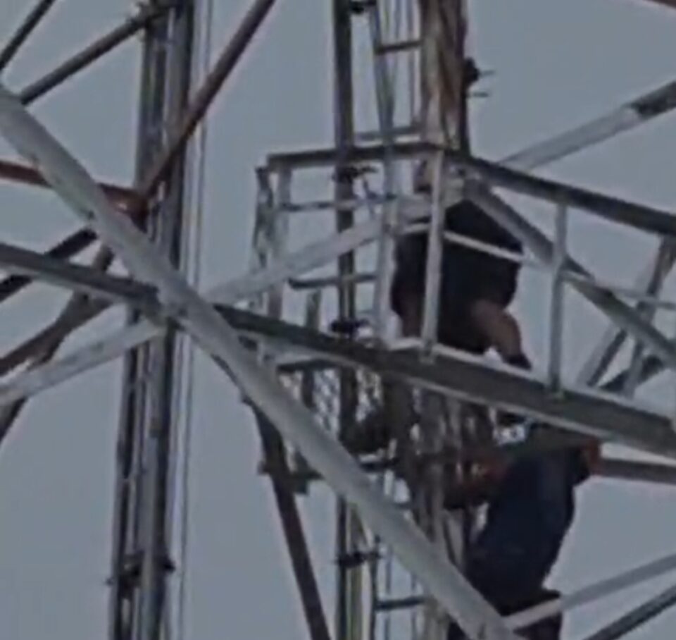 Sementara itu, pelaku lainnya masih bertahan di atas tower sebelum akhirnya ikut diamankan aparat.