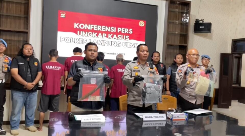 Waka Polres Lampung Utara, Kompol Yohanis, bersama Kasat Reskrim AKP Apfryyadi Pratama, dan Kasi Humas AKP Bidiarto dalam pers realase, Selasa 4 November 2025 mengatakan Anggota Polsek bersama Tim tekab 308 Satreskrim, menangkap 5 tersangka tindak pidana kejahatan.
