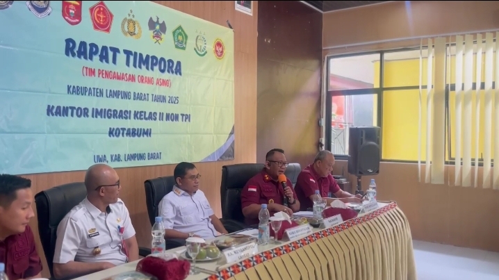 Lampung Barat, Kabarlampung.co – Kantor Imigrasi kelas II Kotabumi menggelar rapat kordinasi bersama Tim pengawasan orang asing atau Timpora Lampung Barat, di Aula Pakuwon, Bappenda setempat, Rabu 12 November 2025. Bertujuan mengantisipasi adanya keberadaan WNA Ilegal.