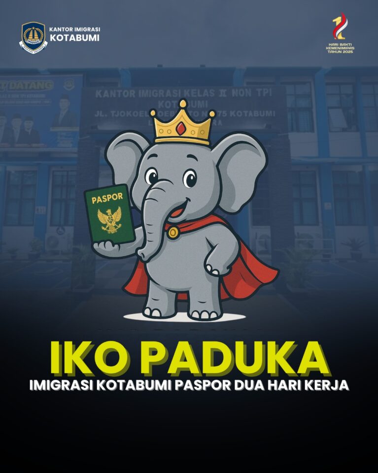 Gajah sebagai Maskot layanan terbaru “IKO PADUKA” (Imigrasi Kotabumi Paspor Dua Hari Kerja).