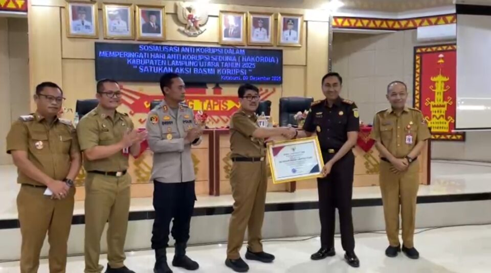 Lampung Utara, Kabarlampung.co – Pemkab Lampung Utara menggelar Sosialisasi Anti Korupsi dalam rangka memperingati Hari Anti Korupsi Sedunia (Hakordia) Tahun 2025, di ruang tapis pemda setempat, Selasa (9/12/2025)