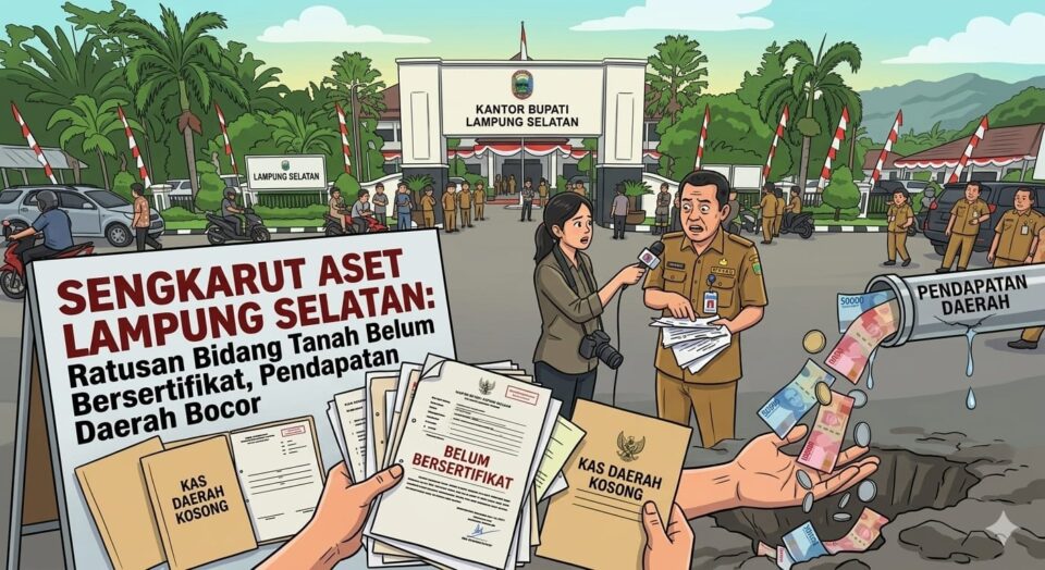Lampung Selatan, Kabarlampung.co – Pengelolaan aset daerah di Kabupaten Lampung Selatan kembali menjadi sorotan tajam. Ratusan bidang tanah milik pemerintah daerah diduga tidak dikelola secara profesional, bahkan sebagian besar belum memiliki sertifikat resmi. Kondisi ini membuka celah besar bagi kebocoran potensi Pendapatan Asli Daerah (PAD) yang nilainya diperkirakan mencapai miliaran rupiah.