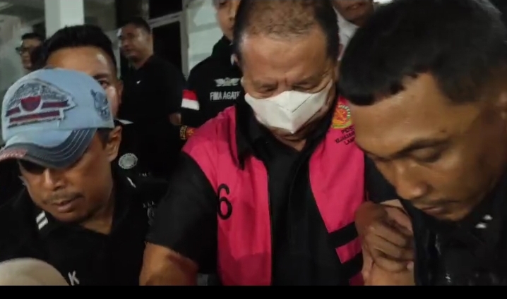 Mantan orang nomor satu di Provinsi Lampung itu tampak mengenakan rompi tahanan berwarna merah muda saat digiring menuju mobil tahanan yang telah disiagakan di depan gedung Pidsus. Pengawalan dilakukan ketat oleh Polisi Militer, petugas kejaksaan, serta tim kuasa hukum.